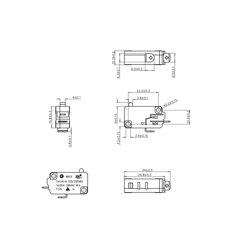 Микропереключатель MS15-3A1 разработан для применения в различных типах маломощных электрических систем, обеспечивая точную и надежную коммутацию. Продукт сертифицирован в соответствии с международными стандартами UL, TUV, KC и CQC, подтверждая его соответствие высоким требованиям к электробезопасности, термической стабильности и механической прочности — ключевым параметрам для долговечной работы в маломощных устройствах.