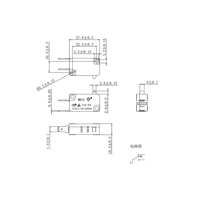 Микропереключатель MS15-6B3 выделяется высоким уровнем безопасности и отличной совместимостью, что делает его подходящим компонентом для широкого спектра применений, от промышленного оборудования до бытовой техники. Он разработан с использованием точного технологического процесса, обеспечивающего высокую надежность и долговечность контактов.