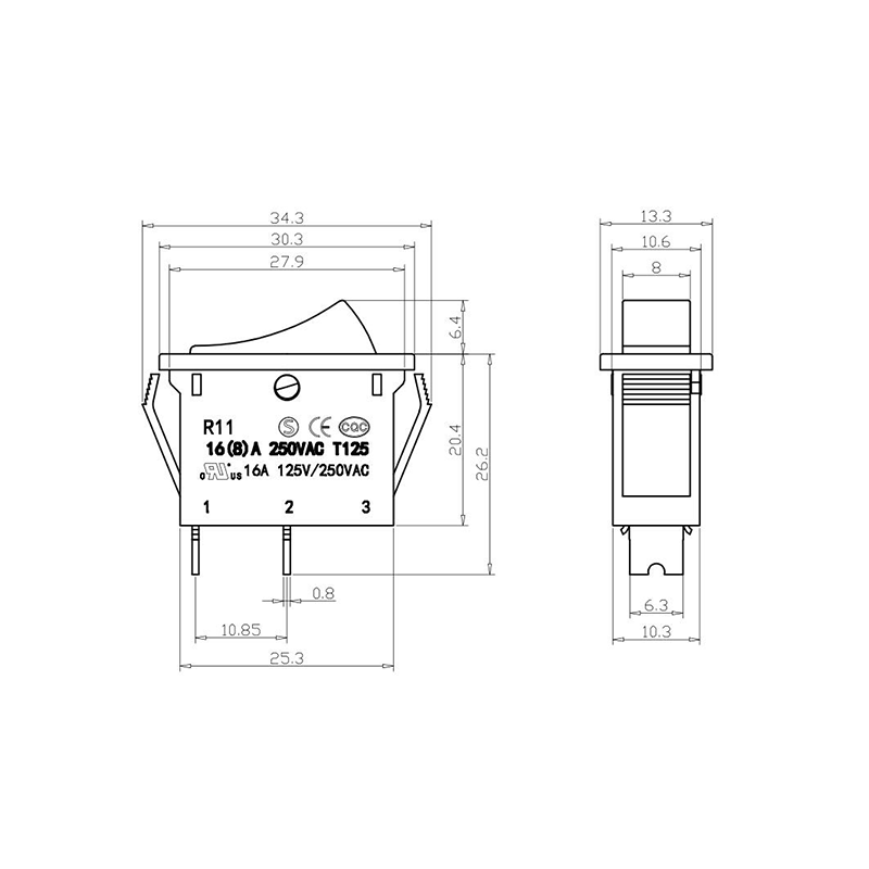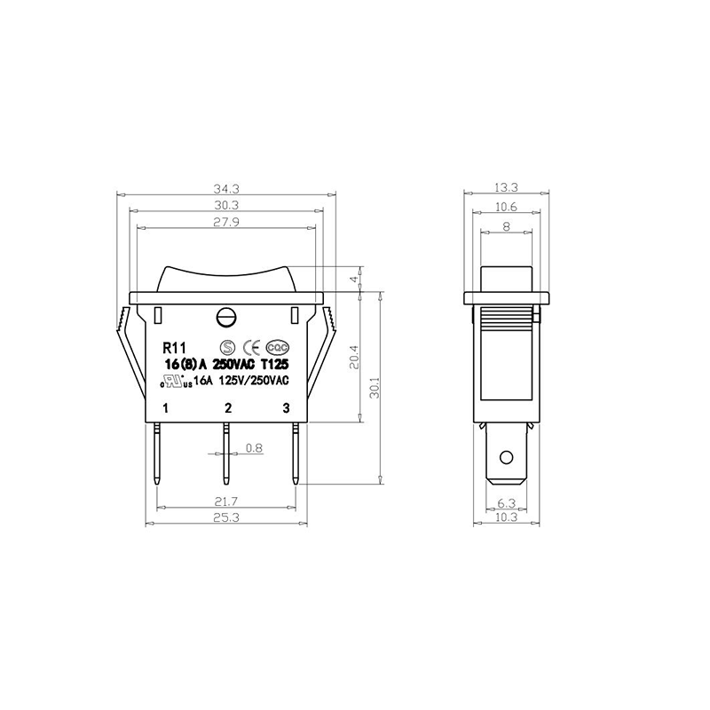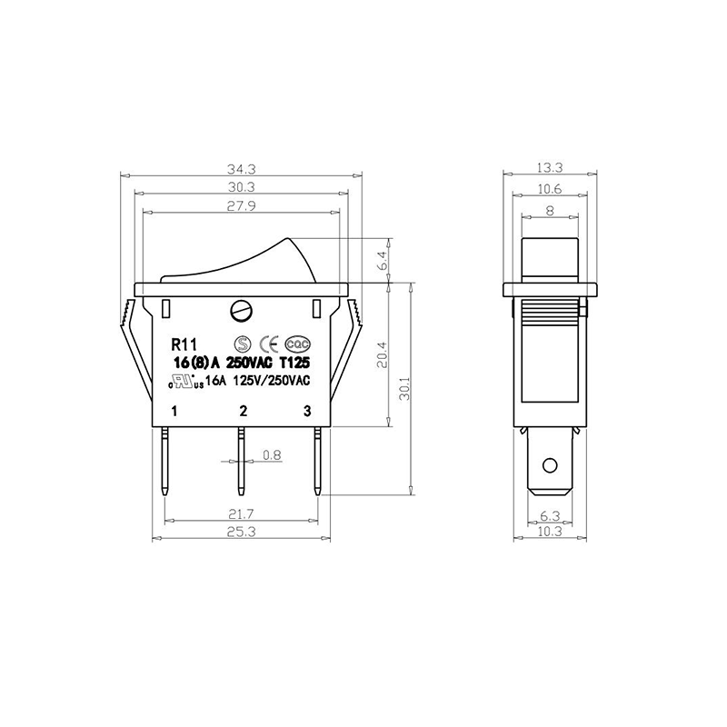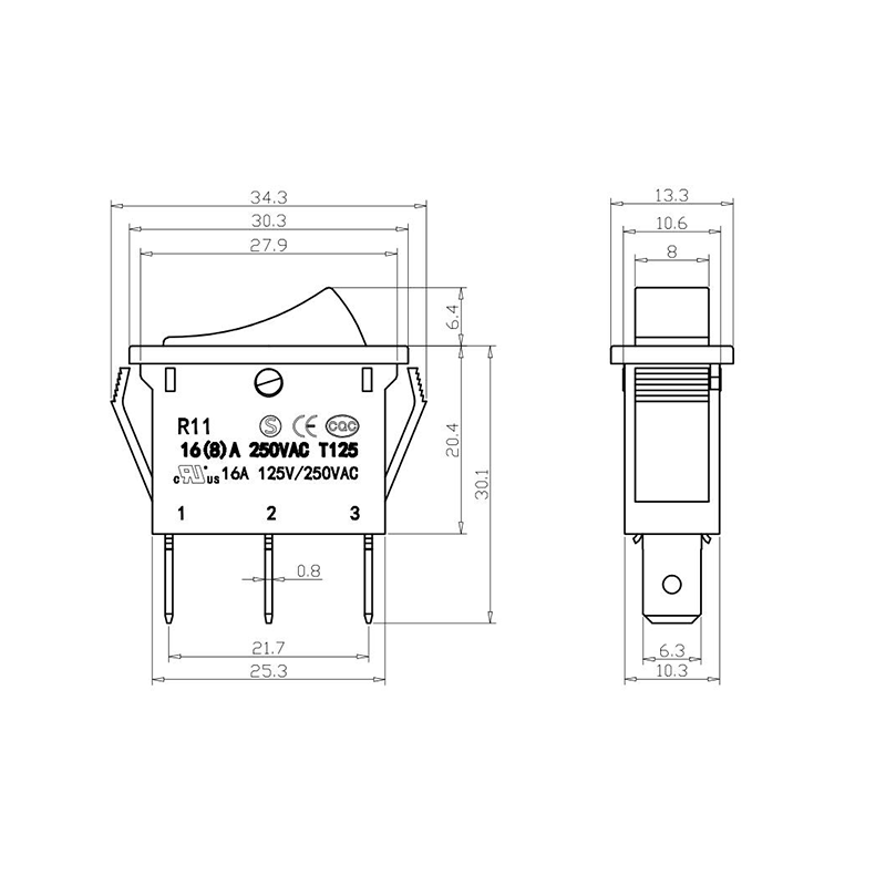 Шанхайская компания Qijia Electronics Co., Ltd. Дом / Продукция / Рокерный переключатель / Рокерный переключатель R11 / R11-11 Коромысловый переключатель для электроприборов