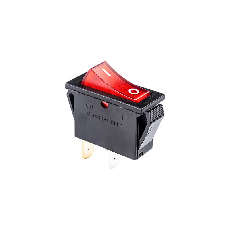 Переключатель серии R11-1 имеет элегантный и лаконичный дизайн: корпус преимущественно выполнен в черном цвете, а кнопка доступна в нескольких вариантах окраски (белый, черный, красный) — это позволяет удовлетворить различные требования к внешнему виду конечного устройства. Кнопка оснащена индикаторами «O» (выключено) и «I» (включено), что облегчает идентификацию состояния переключателя и упрощает использование для пользователей. Кроме того, нижняя часть устройства оснащена металлическими контактами, обеспечивающими надежное электрическое соединение и стабильную передачу тока.
