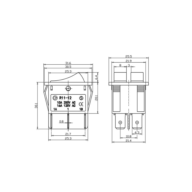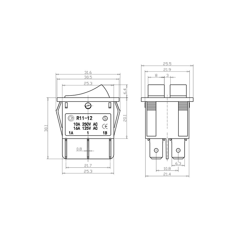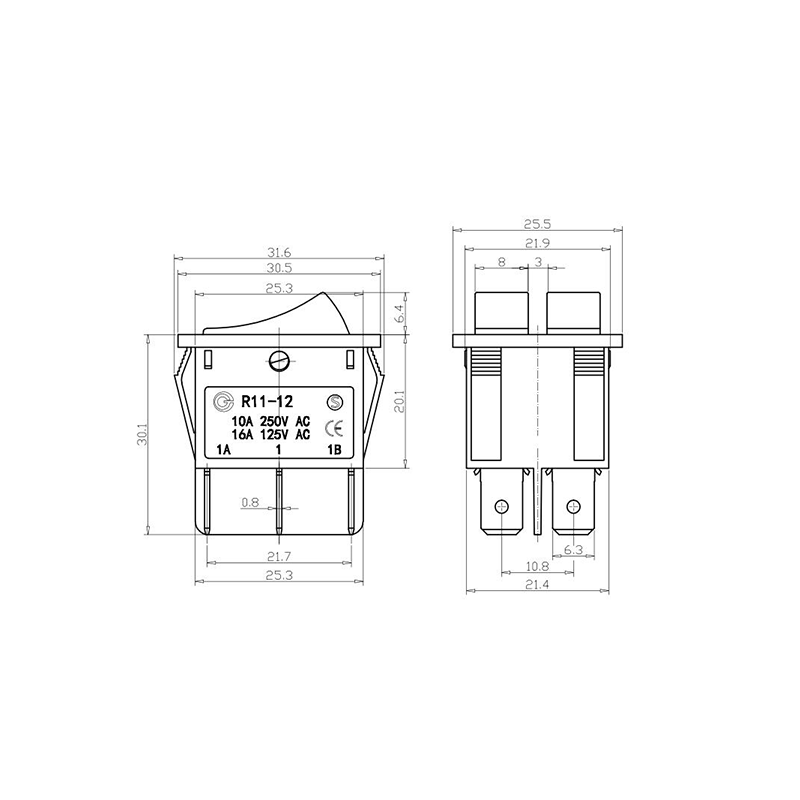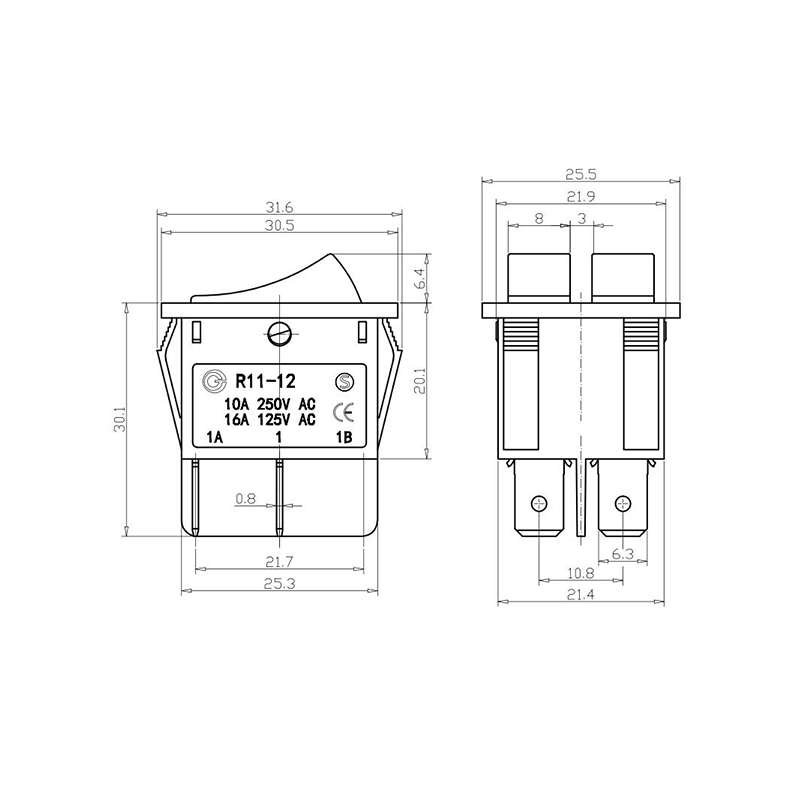 Двухполюсный тумблерный коромысловый переключатель серии R11-12