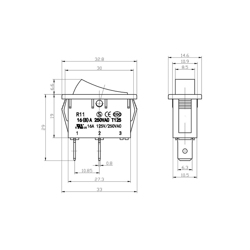 Переключатель R11-15 имеет компактный и элегантный дизайн с гладкой поверхностью. Корпус выполнен из черного или белого пластика, который обеспечивает отличную износостойкость и коррозионную стойкость — это гарантирует сохранение внешнего вида и функциональности при длительном использовании.