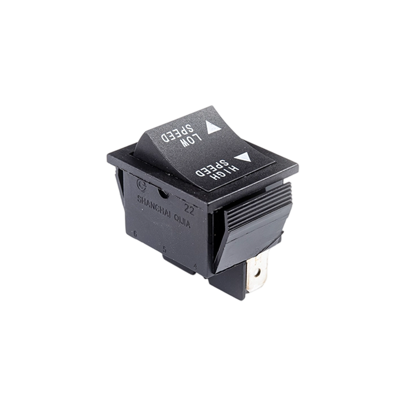 Трехпозиционный коромысловый переключатель R11-22 (назначение — управление питанием и скоростью) имеет удобную конструкцию с четкой маркировкой рабочих режимов: «High Speed» (высокая скорость), «STOP» (останов) и «Low Speed» (низкая скорость). Данное решение делает его идеальным для приложений, требующих регулирования переменной скорости оборудования.​