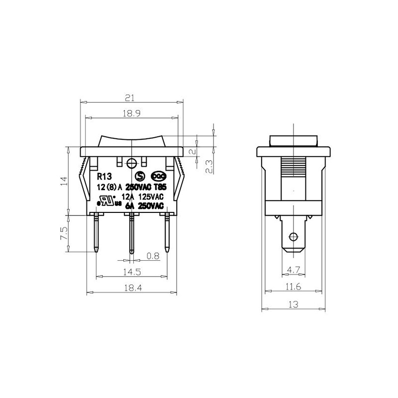 Шанхайская компания Qijia Electronics Co., Ltd. Дом / Продукция / Рокерный переключатель / Рокерный переключатель R13 / R13 - 13 Коромысловый переключатель для офисного оборудования