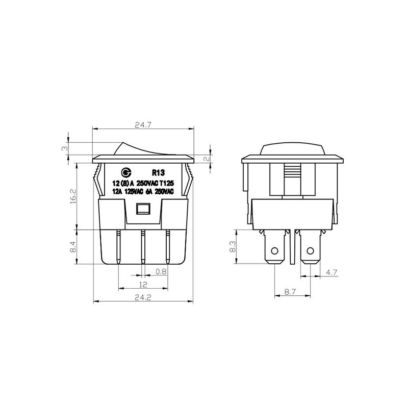 Шанхайская компания Qijia Electronics Co., Ltd. Дом / Продукция / Рокерный переключатель / Рокерный переключатель R13 / Миниатюрный кулисный переключатель R13-36